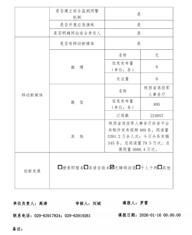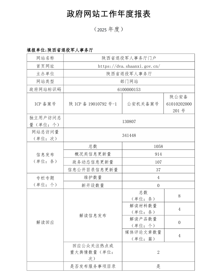 2025年度陕西省退役军人事务厅网站工作年度报表